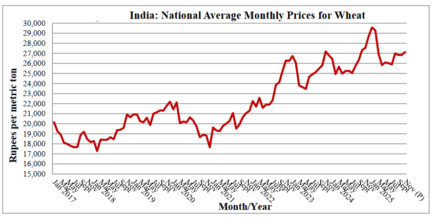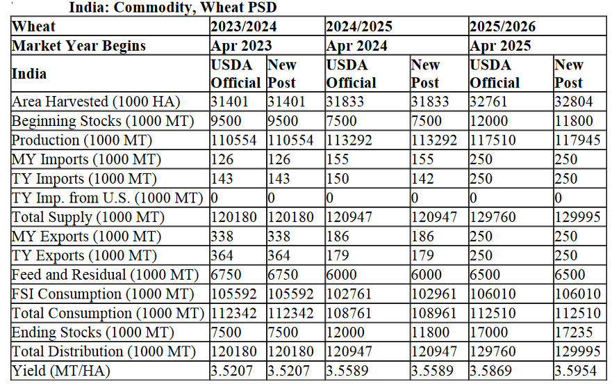 La política de promoción oficial, junto con un escenario climático favorable, permite prever –según la oficina del USDA en Nueva Delhi– que la producción de trigo indio alcanzaría un récord de 117,9 millones de toneladas en 2025/26, una cifra que permitiría incrementar las reservas del cereal de manera significativa.