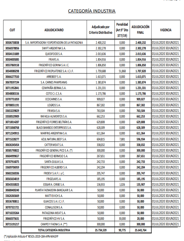 cuota hilton 2020 industria