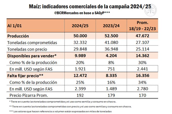 Aún quedaría por vender el 20% de la cosecha de maíz 2024/25 cuando faltan tres meses para el inicio de la nueva campaña 2025/26. Sin embargo, los precios del cereal no “aflojan” a pesar de que se espera una cosechón de 61 millones de toneladas versus 50 millones en el ciclo previo.