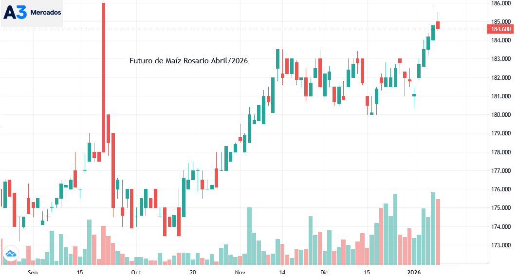 En las últimas jornadas en valor del contrato Maíz Rosario Abril 2026 (correspondiente al maíz temprano 2025/26) subió con fuerza para registrar un nivel casi simular al experimentado durante el breve lapso en el cual se instrumentó la suspensión temporaria de derechos de exportación.