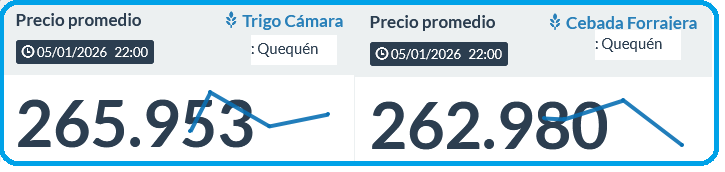 Este lunes el valor promedio negociado de la cebada forrajera con entrega en las terminales de Quequén se ubicó en 262.980 $/tonelada (175,1 u$s/tonelada al dólar MEP), mientras que el precio del trigo pan para ese mismo destino se negoció en una media de 265.953 $/tonelada (177,1 u$s/tonelada), según Sio Granos.