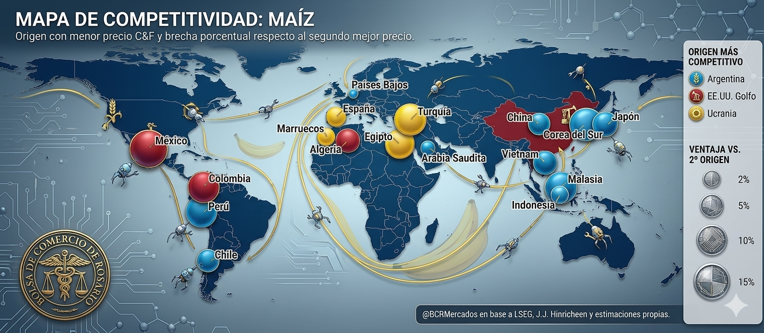 A pesar de las subas de los costos globales de fletes marítimos, el maíz argentino sigue siendo el más competitivo del mundo, aprovechando la ventana típica de competitividad hasta que ingresen al mercado la cosecha brasileña de maíz tardío a partir de junio/julio.