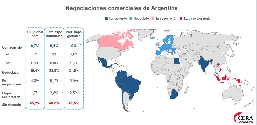 La Cámara de Exportadores de la República Argentina (CERA) presentó un documento (Estrategia Nacional Exportadora) en el cual se reflejan las paupérrimas condiciones que deben enfrentar las empresas que operan en comercio exterior.