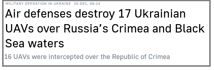 También señaló que las fuerzas de defensa aérea derribaron 17 vehículos aéreos no tripulados (UAV) ucranianos en el espacio aéreo sobre la República Rusa de Crimea y en el espacio aéreo sobre el Mar Negro la mañana del viernes.