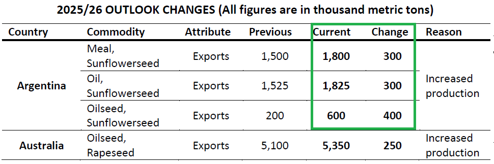 Esta semana el informe mensual del USDA ajustó la estimación de exportación de semilla de girasol por parte de la Argentina en 2025/26 para ubicarla ahora en 600.000 toneladas, pero ese dato ya quedó viejo.