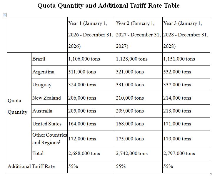 Finalmente, el Ministerio de Comercio de China publicó este miércoles las cuotas de importación de carne vacuna que comenzarán a regir a partir de mañana 1 de enero de 2026.