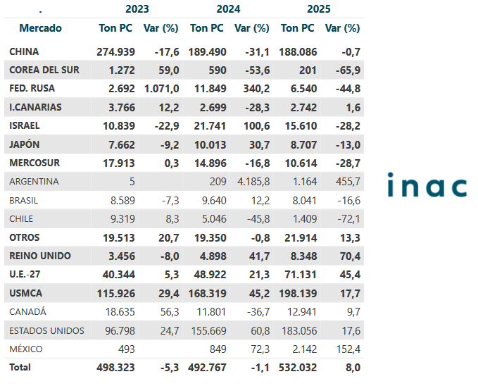 Otros países de menor relevancia tendrán un cupo conjunto de 172.000 toneladas, lo que hace un total de 2,688 millones de toneladas para el año 2026.