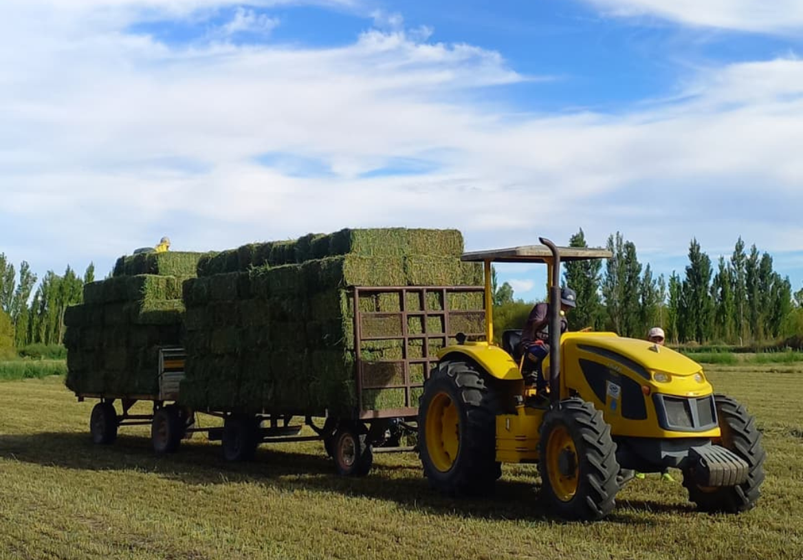 En cuanto a la actividad forrajera, cuenta: “Hacemos 35.000 fardos al año. De esos una parte la tenemos que vender durante el ciclo productivo para poder funcionar, porque vivimos de esto. Una parte se vende enseguida, mientras vamos cosechando, y una parte se va a la Cordillera, el mayor porcentaje. Otra parte le vendemos a la provincia todos los años”.