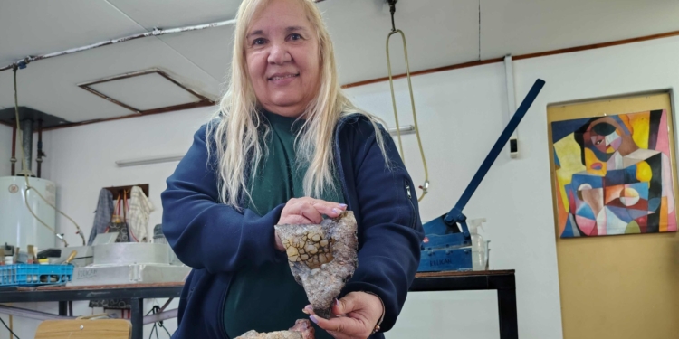 Mónica Arrejoria lo dice sin vueltas: “Desde que estoy con las piedras tengo la cabeza mirando el piso y no el paisaje”. Lo cuenta entre risas, pero es literal. Desde hace veinte años camina con la mirada baja, entrenada para detectar lo que otros no ven. “La gente sale al campo y encuentra puntas de flecha; yo nunca encontré una porque mi ojo busca otras cosas”.