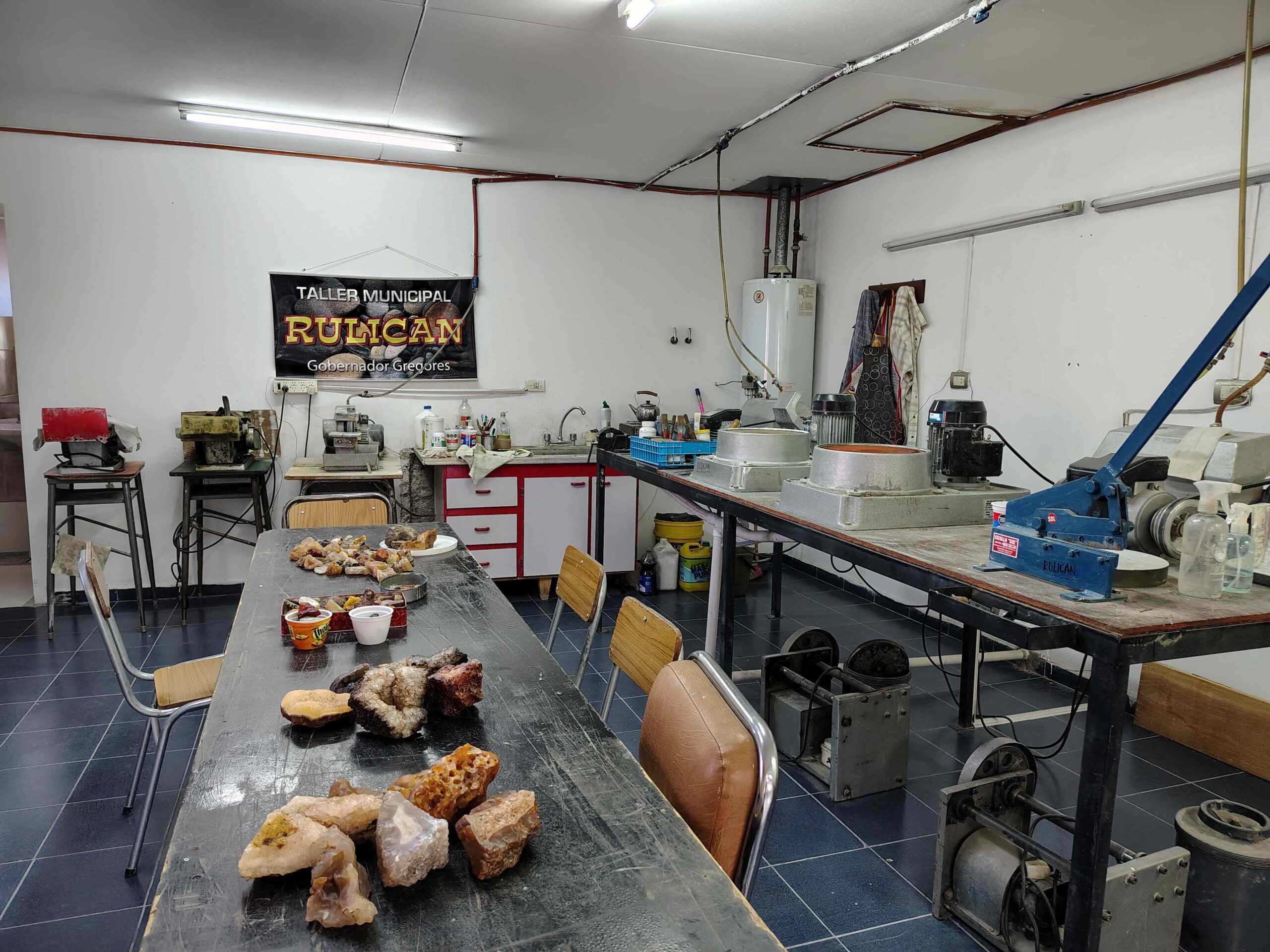 “Tenemos sopletes, sierras, pinzas, bruñidores, el tema es que todo viene de Buenos Aires o del exterior, por eso todo es difícil o caro”, resume mientras acomoda unas ágatas recién pulidas. “El carburo de silicio es nuestro insumo principal, se usa como lija molida en diferentes granulados… pero está valuado en dólares, se importa y encima el flete hasta Gregores lo encarece muchísimo más. Sale 30 mil pesos el kilo y otros 30 mil traerlo”.