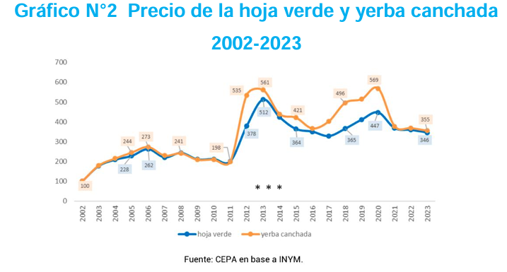 Para el caso de la yerba, la historia ya es bien conocida. Entre diciembre de 2023 y junio de 2025, el precio real de la hoja verde cayó 45,9%, un ajuste mucho mayor que la caída del precio en góndola, que rondó el 31,8%.