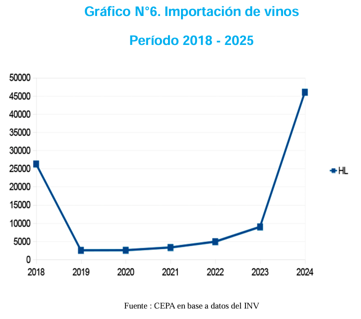 En cuanto a la entrada de vino importado, la misma “aumentó 415% en 2024, presionando a la baja los precios locales y reduciendo la competitividad de productores nacionales frente a productos más baratos”.