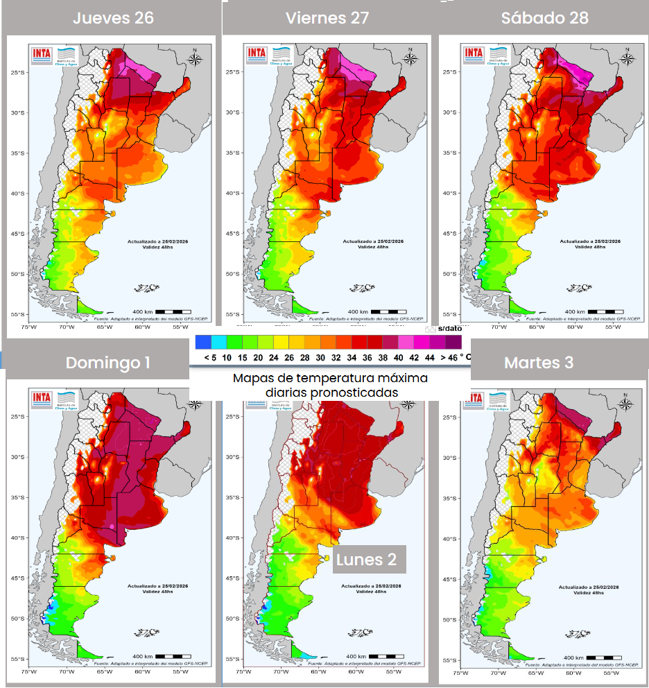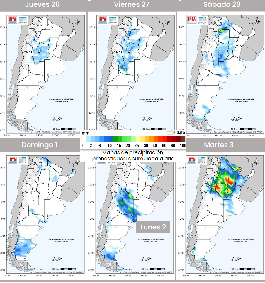 En ese marco, no se prevé la formación de tormentas intensas ni precipitaciones abundantes hasta el próximo lunes en la mayor parte de las zonas productivas.