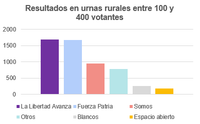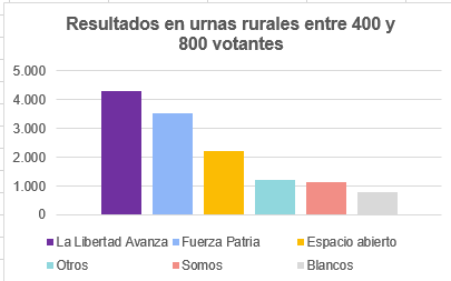 “Entre quienes residen en el campo, ganó Milei”, fue la definición que brindó el equipo de trabajo, tras observar que en pueblos de menos de 1400 votantes la mayoría de productores y trabajadores rurales habían puesto la boleta violeta. El tema es que esos votos no fueron suficientes para traccionar los candidatos mileístas, y quedaron invisibilizados bajo los números que arrojaron las localidades más importantes de esos partidos en su conjunto