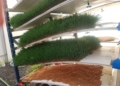 El ingeniero describe lo simple de su manejo: “Pasados los 9 días de promedio, ya tenés generado el ‘pasto’ nutritivo, verde o seco. Y lo tenés que sacar, porque si sigue creciendo, se debilita y pierde propiedades. Uno o dos días antes, se los deja de regar y lo cosechamos. Lo oreamos durante una tarde o un día, de modo natural, para que pierda algo de agua. No se debe secar mecánicamente porque pierde proteínas, sólo orear unos momentos”.