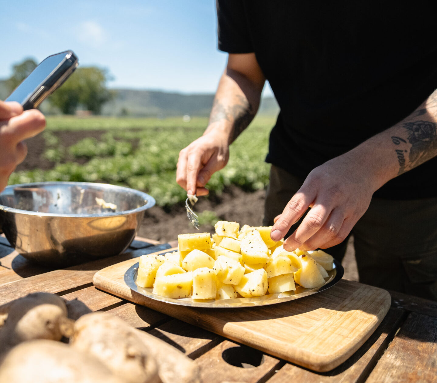 El ofrecimiento no era menor para él, no sólo porque usaba papa en cantidad para ensayar y montar sus videos, sino porque las necesitaba de cierta calidad y características para que culinariamente funcionaran. Eso, asegura, no le había significado un obstáculo en España, donde la oferta suele estar más segmentada y las variedades se distinguen en el mercado, por ejemplo, por su calidad para freír.