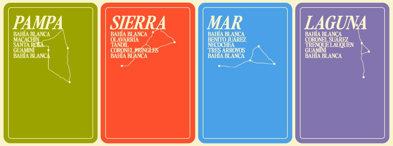 Las zonas relevadas abarcaron 51 partidos bonaerenses y pampeanos a partir del diseño de cuatro circuitos oficiales: Mar, que relevó la costa atlántica, pasando por Benito Juárez, Necochea y Tres Arroyos; Sierra, que comprendió la zona centro de la provincia de Buenos Aires, pasando por Olavarría, Tandil y Coronel Pringles; Laguna, que corresponde a la zona oeste de la provincia de Buenos Aires, pasando por Coronel Suárez, Trenque Lauquen y Guaminí; y Pampa, cuyas localidades de referencia son Macachín, Santa Rosa y Guaminí.