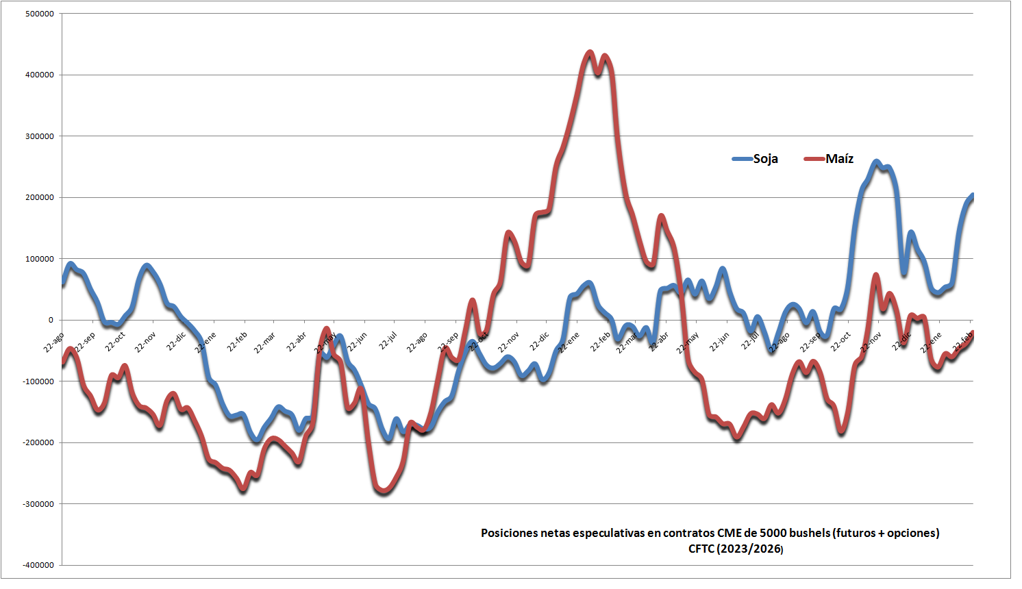 Así lo reflejan los datos publicados hoy viernes por la Commodity Futures Trading Commission. El pasado martes la posición neta especulativa en contratos futuros y opciones de soja en el CME se incrementó en un 8% con respecto a la semana previa, mientras que en el caso del maíz, si bien sigue en terreno negativo, el mismo se viene reduciendo de manera progresiva.
