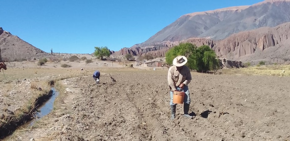 Cabe aclarar que son productos muy ricos, muy sanos, muy naturales y, por lo general, se fertiliza la tierra con abono de las cabras, sin agregado químico. Se trata de mantener esa costumbre. Es una zona diversa que tiene partes altas y bajas y se va organizando según eso. Siempre trabaja duro la mujer del campo y el hombre de esta quebrada, algunos se dedican al hilado a trabajar la lana de llama o de oveja, a los tejidos, al hilado, a hacer tapices, por lo general cada hogar siempre combina la producción ganadera con un poco de siembra, un poco de artesanía, va mezclando y va viendo cómo subsistir.