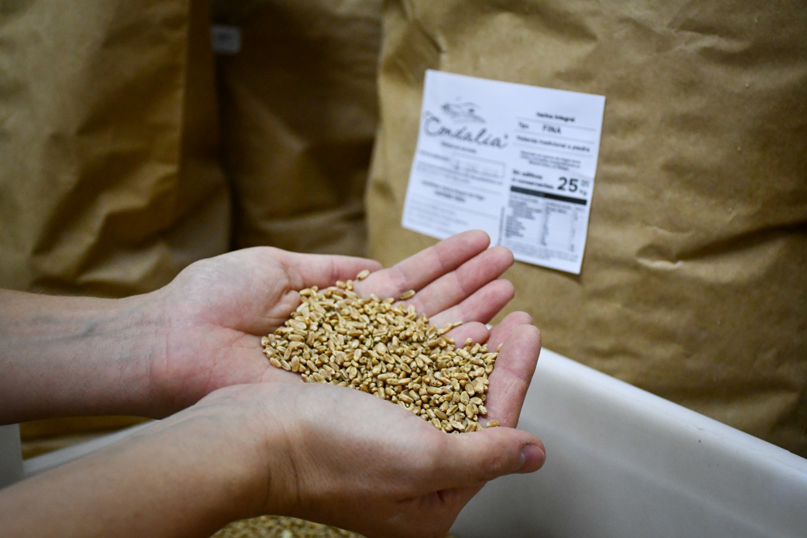 Bajo esa marca producen y comercializan harinas integrales de trigo y centeno, con la particularidad de que todo el proceso está integrado localmente, desde la producción del grano hasta la molienda. Uno de los rasgos distintivos del emprendimiento es la molienda a piedra, un método artesanal que remite a prácticas tradicionales y que permite conservar las propiedades nutricionales del grano. El resultado es una harina integral que mantiene intactos sus nutrientes.