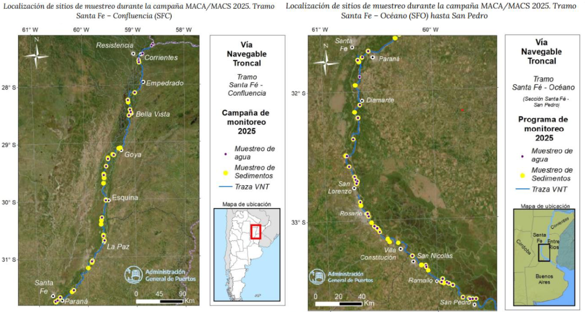 El informe ambiental destaca que se han incorporado nuevas estaciones de muestreo de agua y/o sedimentos en el programa de las campañas anuales de monitoreo de calidad de las matrices ambientales del río Paraná.