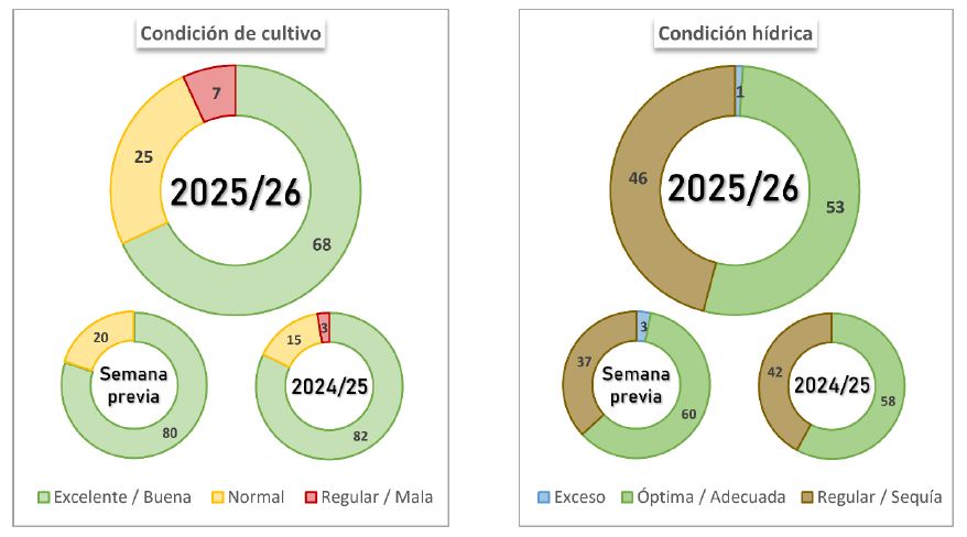 No puede decirse lo mismo en el sur de la zona pampeana argentina, donde hacen falta nuevas lluvias para recomponer la situación del cultivo. En ese marco, casi la mitad del área de girasol por recolectar se encuentra con algún nivel de restricción hídrica versus un 37% una semana atrás.