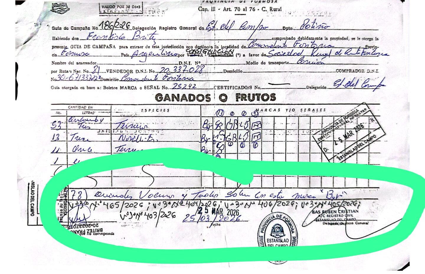 Según consta en la Ley 1314, que instaura el Código Rural en la provincia de Formosa, además de las guías y DTe emitido por Senasa, se deberá contar con la aclaración del mencionado “remanente” cuando se realizaran “ventas parciales entre un punto y otro”.