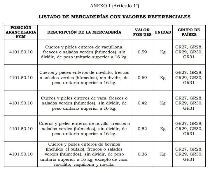 cueros precios referenciales