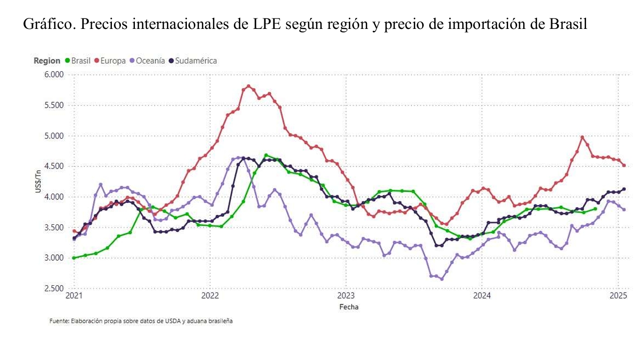 La presentación también destaca que la leche en polvo es una commoditie global, con precios determinados por tendencias internacionales. En ese sentido, la evolución de valores en Brasil habría seguido la misma dinámica que en el mercado mundial, sin evidencia de prácticas predatorias por parte de exportadores argentinos.