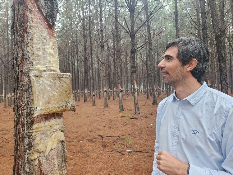Aunque las condiciones naturales son excelentes, la actividad enfrenta limitaciones. “Hay muchas forestaciones, pero no tantos productores que se dediquen a la extracción. En el país hay unas seis o siete empresas que lo hacen”, indica. La razón principal es la alta demanda de mano de obra. “La resinación se realiza exactamente igual que hace décadas. Es un trabajo totalmente manual. Cada operario tiene asignadas unas 15 hectáreas y recorre diariamente las plantaciones haciendo los cortes y el mantenimiento”, comenta.
