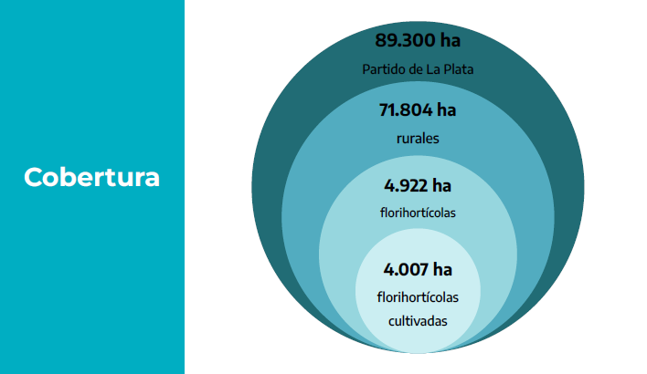 Actualmente, de las casi 90.000 hectáreas que tiene el partido de La Plata, poco más del 5%, unas 4922 hectáreas, son de la actividad florihortícola. De ese total, un 81% se utiliza para cultivo, es decir unas 4008 aproximadamente.