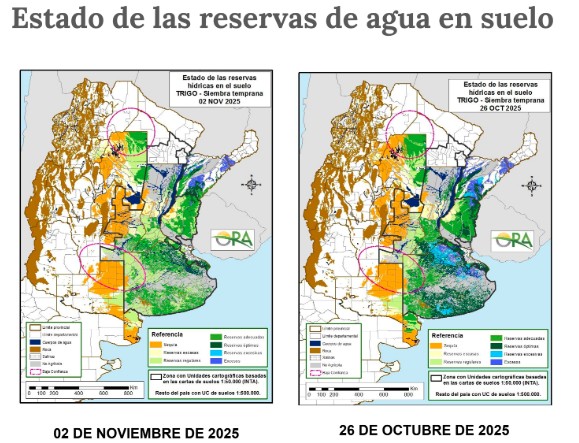 En contraste, la falta de lluvias comenzó a afectar otros puntos del país. La ORA señala que La Pampa, el centro y oeste de Córdoba, y el oeste de Santiago del Estero presentan reservas “regulares a escasas” y amplios sectores ya en situación de sequía. En tanto, en Corrientes, Santa Fe y Entre Ríos también se observó un secamiento en el perfil del suelo debido a la escasa actividad pluvial de la última semana.
