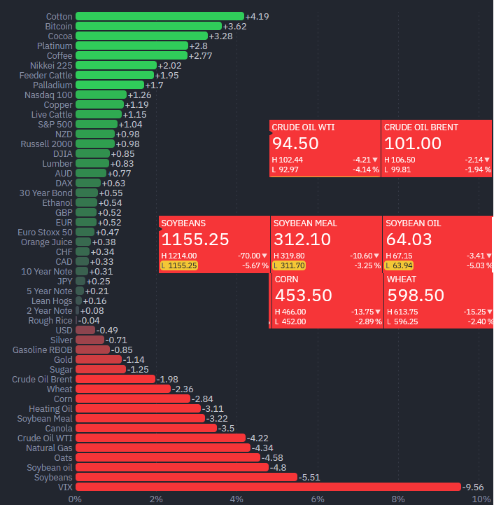 La semana arrancó pérdidas enormes en las cotizaciones de los contratos futuros de productos agroindustriales del CME Group (“Chicago”), un evento que se encuentra alineado con un baja también profunda del valor internacional del petróleo.