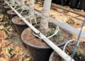 Los agrónomos comienzan aclarando que en Argentina el sistema de hidroponia suele asociarse sólo a las plantas cultivadas en un medio o sustrato acuoso, pero que este modo no es exclusivo. Explican que sus plantas de higos pueden llegar a medir hasta 7 u 8 metros de alto. Entonces se las coloca en macetas, porque obviamente no pueden crecer dentro de los clásicos caños de PVC, ya que no los soportarían. Detalla Facundo que se asienta sobre un sustrato con perlitas y fibra de coco, pero todas las macetas son irrigadas con el sistema de riego por goteo, aunque de modo constante y no continuo, proveyendo el agua con la solución nutritiva. Por esta razón el sistema es hidropónico.