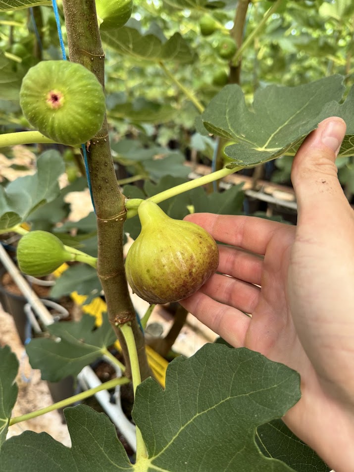 “Tenemos un invernadero de una hectárea con 18.000 a 19.000 plantas de higo en producción hidropónica, más 3 hectáreas del mismo cultivo, pero a campo. Más 9 hectáreas de palta a campo, pronto a remplazar. Los higos son de la variedad Black Genoa (Ficus Carica), grandes, de piel morada casi negra y pulpa dulce y muy rica, de rojo intenso. Es muy productiva, de veloz crecimiento y autofértil”, describen.