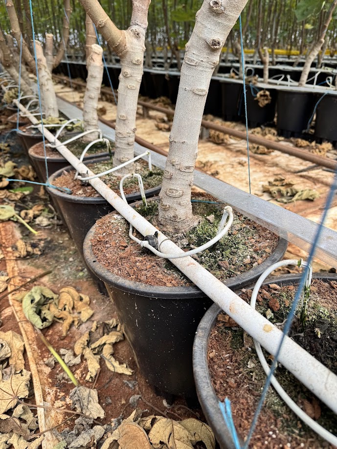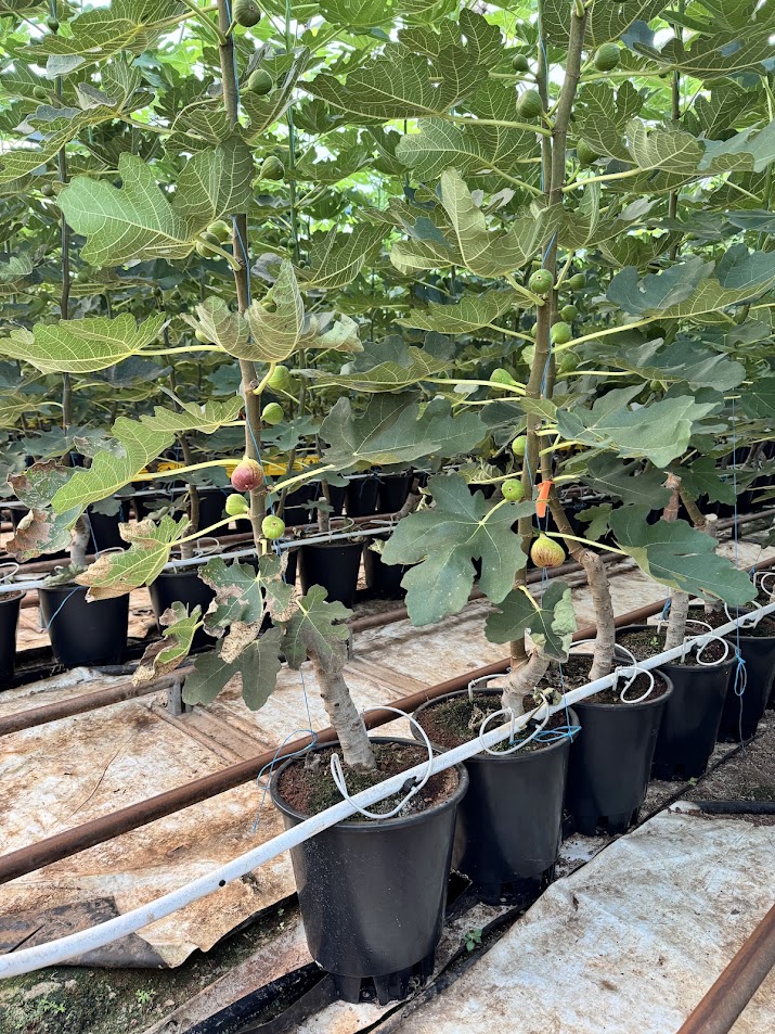 Los agrónomos comienzan aclarando que en Argentina el sistema de hidroponia suele asociarse sólo a las plantas cultivadas en un medio o sustrato acuoso, pero que este modo no es exclusivo. Explican que sus plantas de higos pueden llegar a medir hasta 7 u 8 metros de alto. Entonces se las coloca en macetas, porque obviamente no pueden crecer dentro de los clásicos caños de PVC, ya que no los soportarían. Detalla Facundo que se asienta sobre un sustrato con perlitas y fibra de coco, pero todas las macetas son irrigadas con el sistema de riego por goteo, aunque de modo constante y no continuo, proveyendo el agua con la solución nutritiva. Por esta razón el sistema es hidropónico.