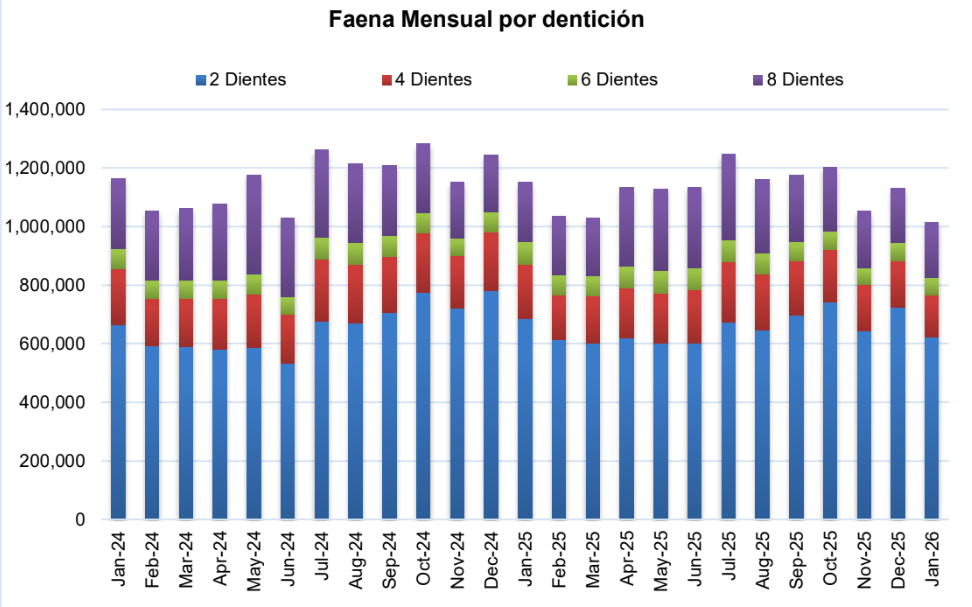 Esto se refleja en un mayor peso por res faenada, que en enero alcanzó los 236 kilos. Esto significa un aumento de 2% respecto del promedio del año pasado y de enero de 2025.