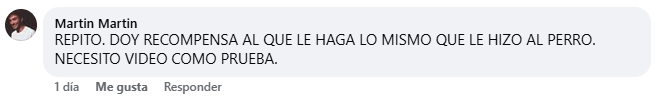 “Doy recompensa al que le haga lo mismo que le hizo al perro. Necesito video como prueba”, sumó el usuario “Martín Martín”.