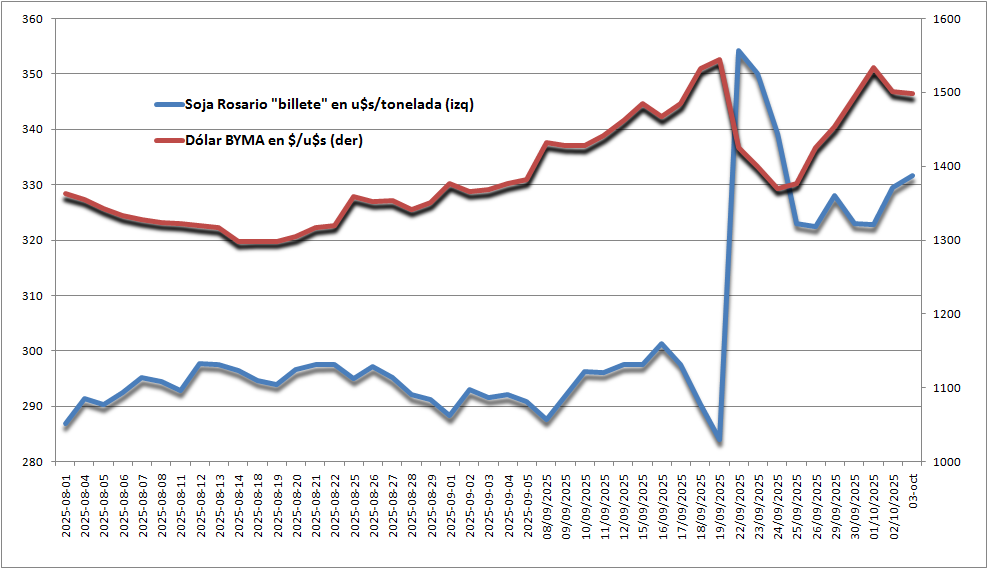 Sin embargo, los valores de la soja Rosario en “moneda dura” se mantienen bastante más elevados que con respecto a la situación presente antes de la implementación del régimen.