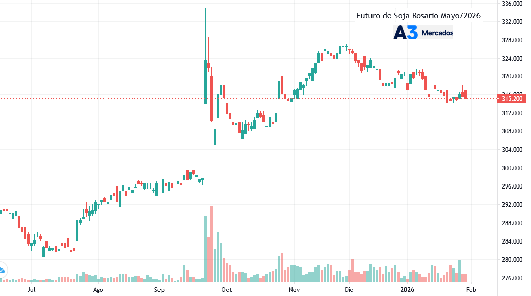 Los que optaron por vender parte de la Soja Mayo 2026 A3 con valores de 320 a 325 u$s/tonelada saben hoy que tomaron una buena decisión porque los precios están comenzando a reflejar la presión de cosecha de Brasil.