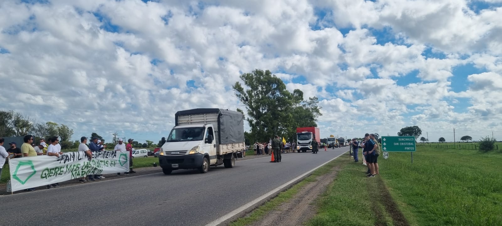 Con el control de la Gendarmería Nacional y la Policía de la Provincia de Santa Fe, en dos momentos de la mañana se intervino el tránsito por minutos, para desplegar las banderas donde se advertía sobre el vaciamiento de la empresa, la necesidad de los sueldos y la urgencia de reactivación.