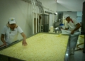 La producción comienza en el vivero de la cooperativa, que entrega los plantines a los agricultores. Se trabaja con variedades híbridas de alto rendimiento, seleccionadas para asegurar volumen y calidad. La cosecha se realiza con la fruta aún verde, que es acopiada en piletones con sal donde permanece más de 30 días en proceso de encurtido.