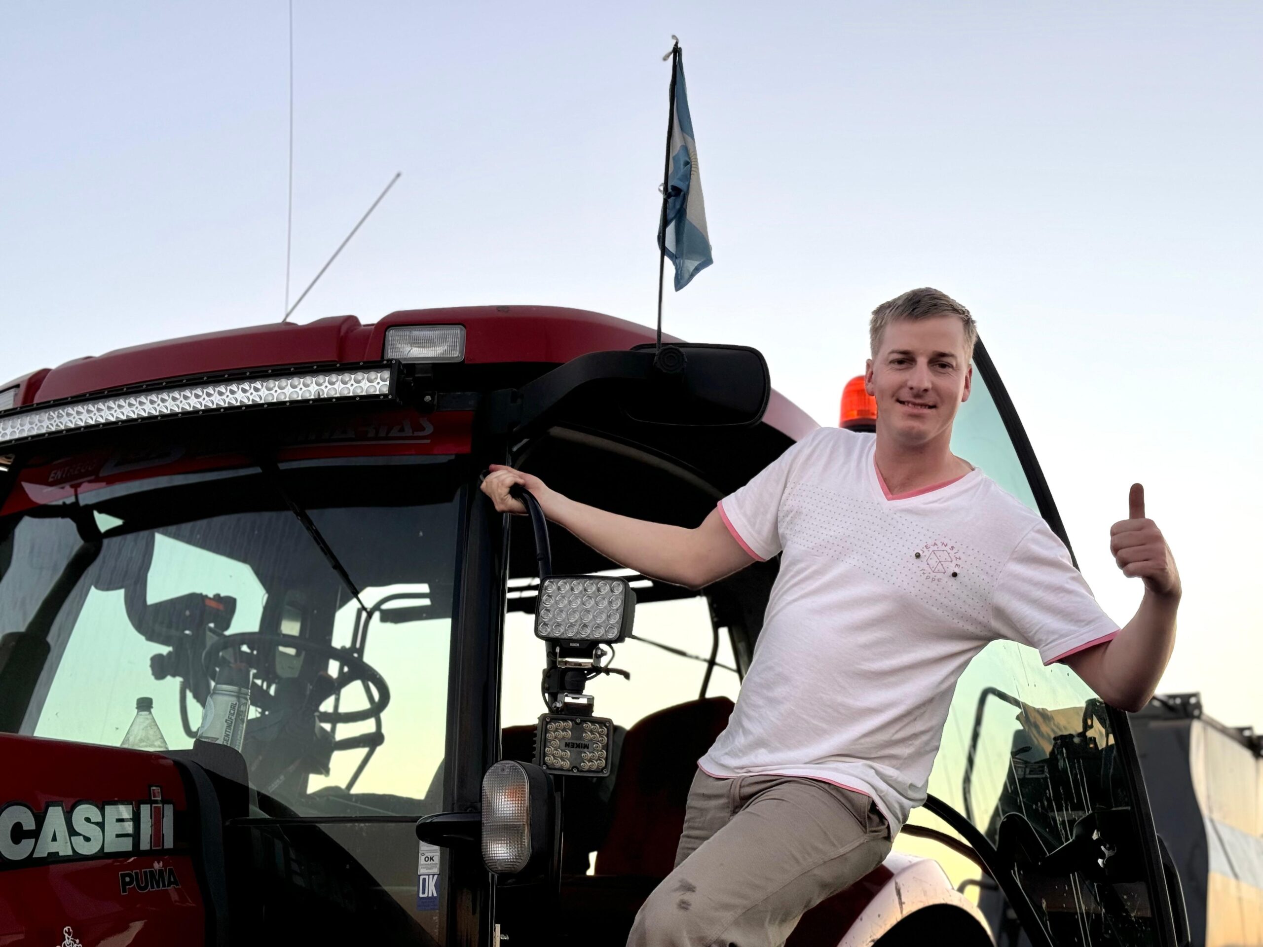 “Soy super feliz trabajando en el campo con mi familia, es apasionante. Puede que las cosas salgan mejor o peor, pero vos tenés que dar lo mejor siempre”, dice Emanuel Heinse, un joven entrerriano, hijo de productores y contratistas. No terminó el secundario (aunque le gustaría terminarlo ahora) y se puso a trabajar con el padre. “El primer día me mandaron a hacer de todo como bautismo, para probarme. En plena cosecha y siembra, entrando al verano, de tolvero en un tractor Deutz 85 sin cabina y atendiendo dos cosechadoras. Movidito pero no me arrepiento. Yo era feliz haciendo lo que me gustaba”.