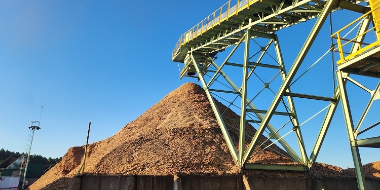 La planta ocupa unas treinta hectáreas y recibe camiones cargados de biomasa que proviene de aserraderos, podas y aprovechamientos forestales de la región. Lo que antes se consideraba un desecho, ahora se convierte en combustible limpio.