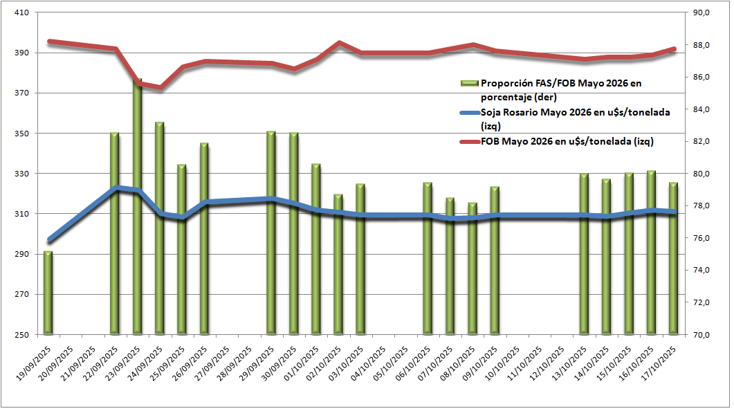 Un valor de 311,3 u$s/tonelada es equivalente al 79,4% del valor FOB oficial correspondiente a esa posición, una cifra equivalente a la presente una semana atrás.
