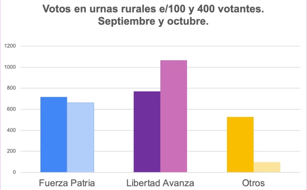 Sin embargo, lo que sucede esta vez, a comparación de septiembre, es que la diferencia entre el primer y segundo puesto es ínfima -unos 46.600 votos-, por lo que el “voto a voto”, aún en las urnas rurales más pequeñas, cuenta. “En una elección tan pareja, eso también suma y cobra relevancia”, señaló el sociólogo especializado en el sector.