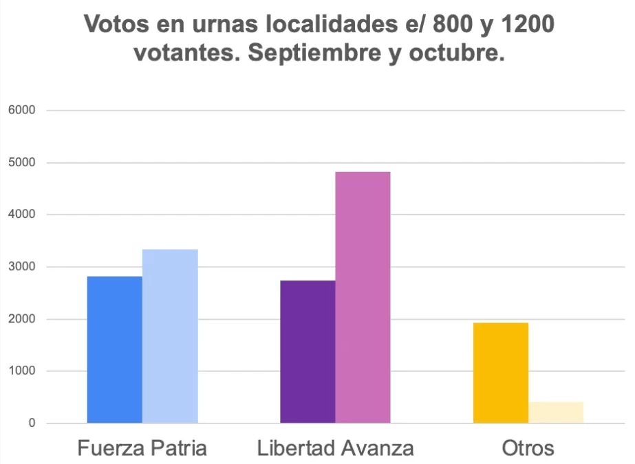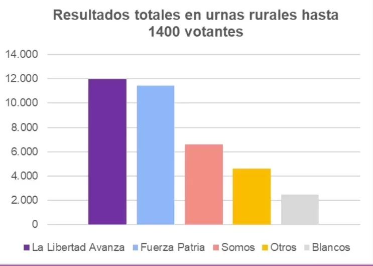 El análisis hecho por el Grupo de Estudios sobre Subalternidad, del que también participaron Alina Alaniz y Lucía Rangan, observa que “en todas las mesas de localidades rurales, los votos de otras fuerzas se pasaron a LLA y casi ninguno a Fuerza Paria”. Eso confirma la evaluación que habían hecho de cara a septiembre, que es que en el interior del interior, en la urnas más pequeñas, el apoyo a Milei por ahora es indiscutido.