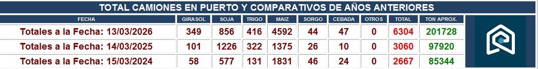 Este viernes por la mañana ingresaron a las terminales del Gran Rosario 4592 camiones cargados con granos, una cifra sustancialmente mayor a la registrada en la misma fecha de las últimas dos campañas, según consignó la empresa Agroentregas.