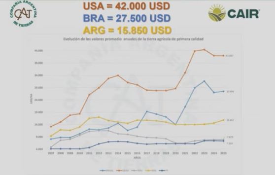 Sin embargo, pese a todo, Frenkel Santillán dijo que la renta promedio de la tierra argentina en los últimos 25 años se ha mantenido en torno al 6%, lo que demuestra el potencial estructural del activo si se lograran condiciones más estables.