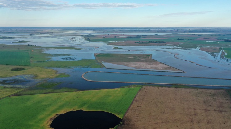 Hace apenas unas semanas, el Gobierno nacional anunció la reactivación de las obras en los 32 kilómetros finales del Salado, en el tramo comprendido entre la Ruta 205 y Ernestina. Pero Iturriaga desmiente que eso haya ocurrido. “Lo que quedó pendiente son treinta y dos kilómetros. Yo voy un poquito más, porque es lo que afecta que se acumule el agua atrás. Son cuatro contratistas, cada uno tiene ocho kilómetros. Pero la única empresa que empezó es la que está pegada a Ernestina, la que menos deuda tenía con el gobierno nacional. O sea, no es del todo así: se reactivó una partecita.”